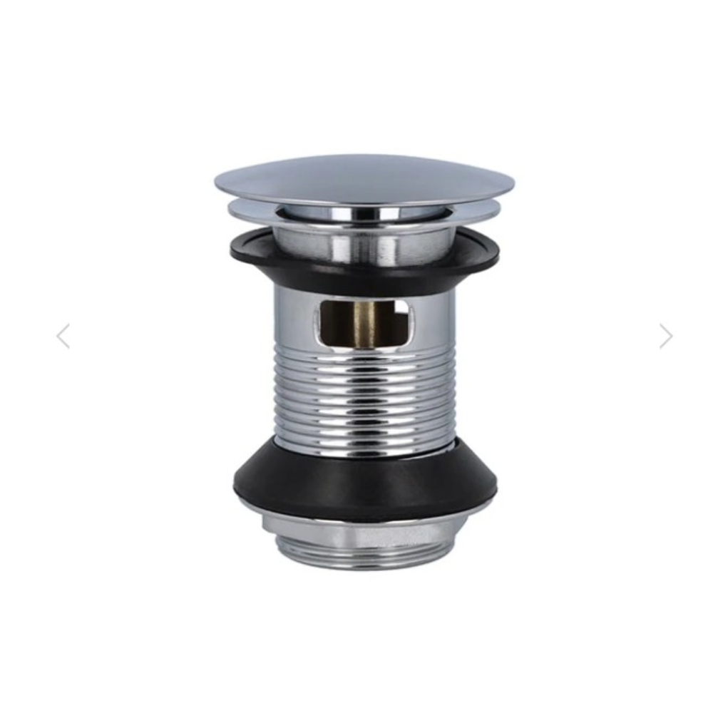 Desagüe para lavamanos con sistema Pop-Up con rebalse, sin tubería ni tuerca de salida.
