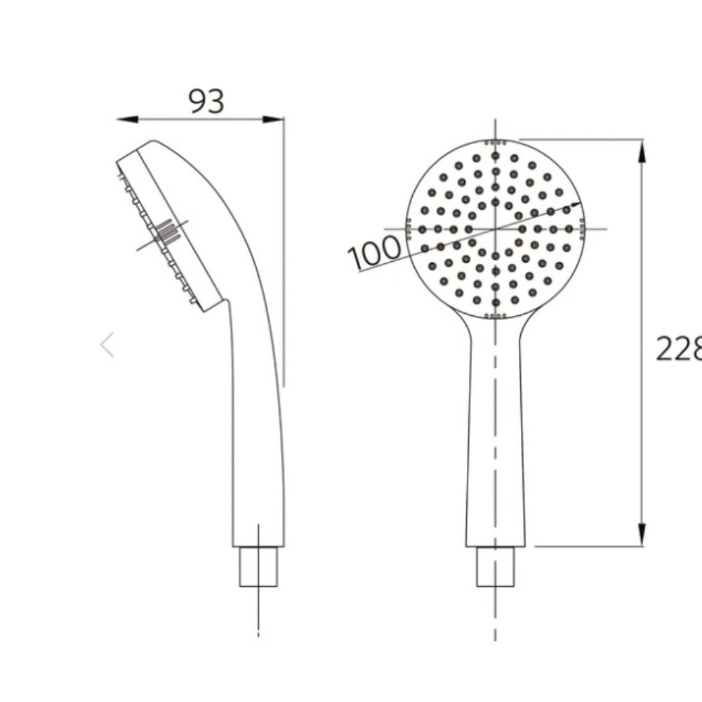 Maneral Ducha 1 función Desmontable Maneral de ducha anticalcáreo con una función. Cabeza desmontable para fácil y rápida limpieza. CONEXIÓN 1/2” HE a flexible. MATERIAL Polimetro de Alta Resistencia (ABS). TERMINACION Cromado
